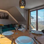 Apartamenty Aparts4U biedt uitzicht op de berg en bestaat uit een balkon en een zitruimte voorzien van airconditioning. Voor extra gemak heeft dit appartement een flatscreen TV met satellietzenders en TV met meerdere kanalen, zodat gasten zich kunnen ontspannen tijdens hun vrije tijd. Deze accommodatie is uitgerust met een badkamer met een haardroger en handdoeken. Bovendien is er ook een apart toilet en een douche.